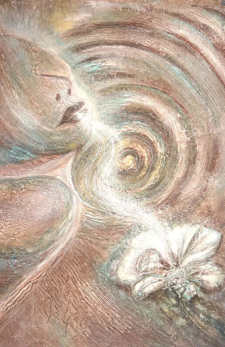 Surrender to the White Rose explores the moment when fragrance becomes movement. A spiraling current flows between a white rose and the human figure, symbolizing the transformation of invisible sensation into embodied awareness. The work reflects the universal spiral pattern through which perception expands beyond the individual into the collective field of experience.